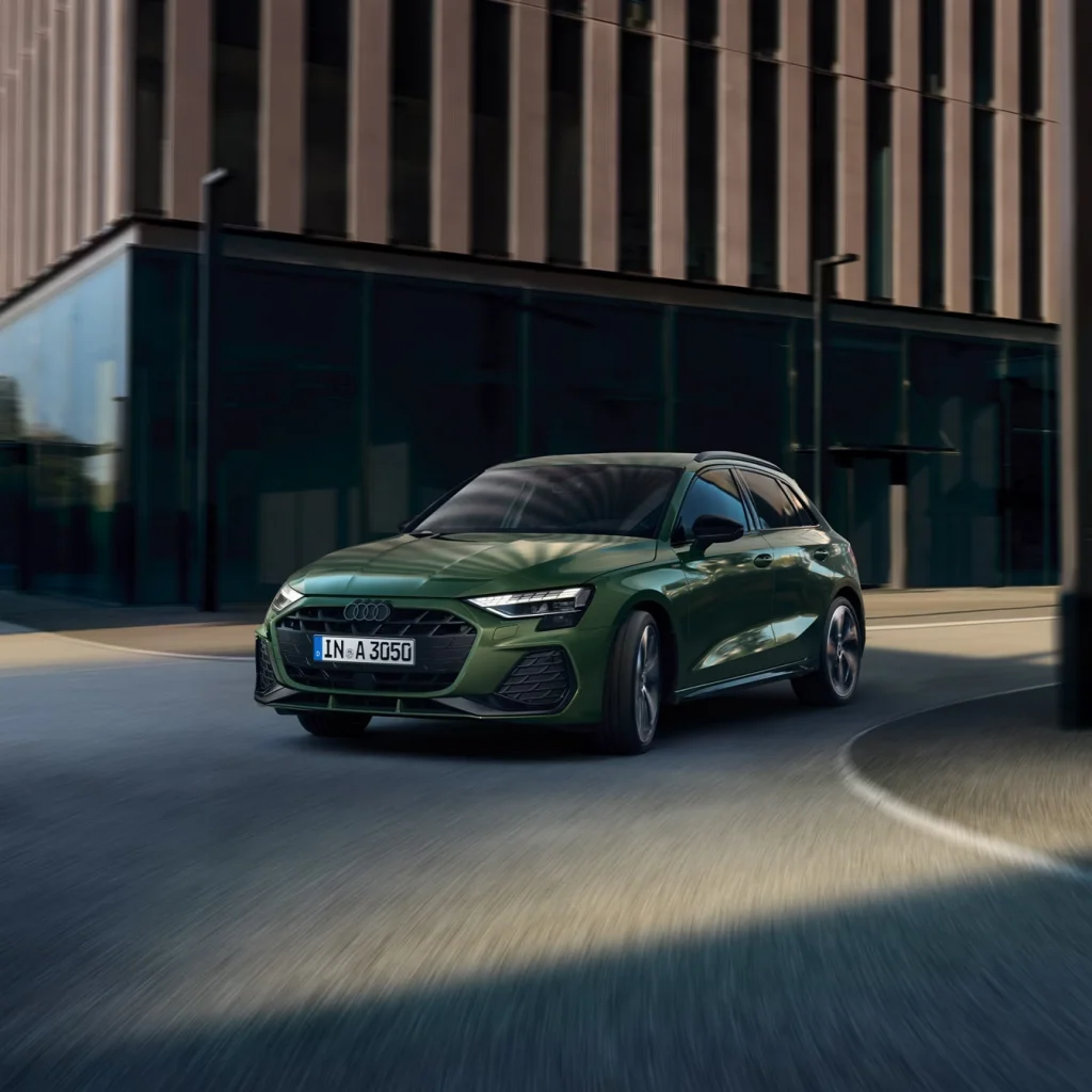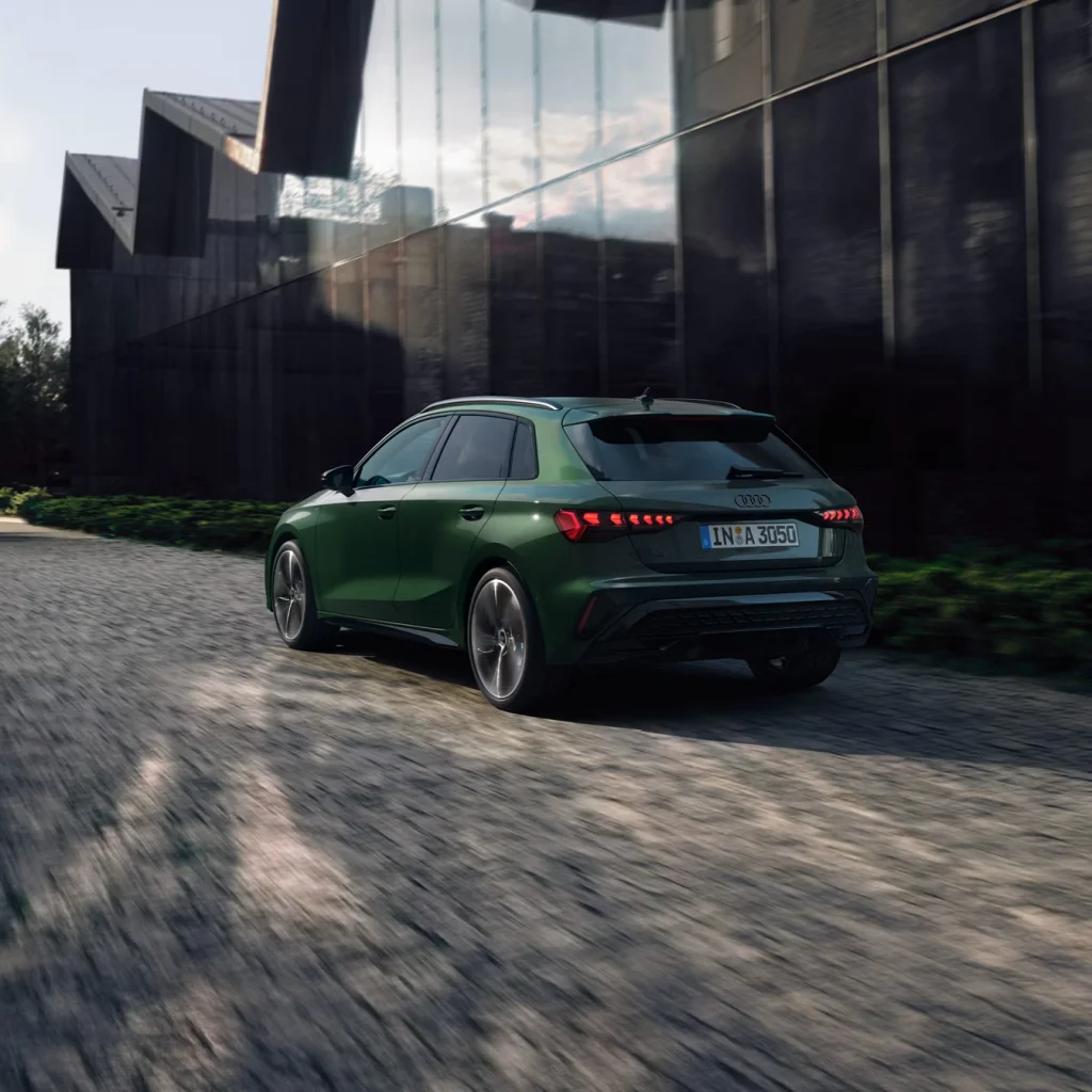 You decide with which paint finish the new Audi A3 Sportback can make the biggest impact, in district green, metallic, for example.