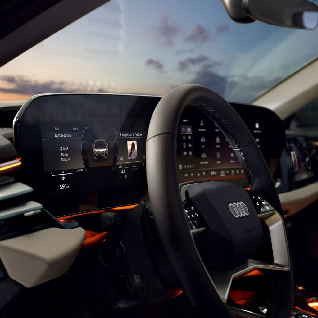 The generous interior exudes puristic aesthetics and, thanks to its fully digitalised instruments and controls, is transformed into a digital stage, framed by high-quality surfaces.