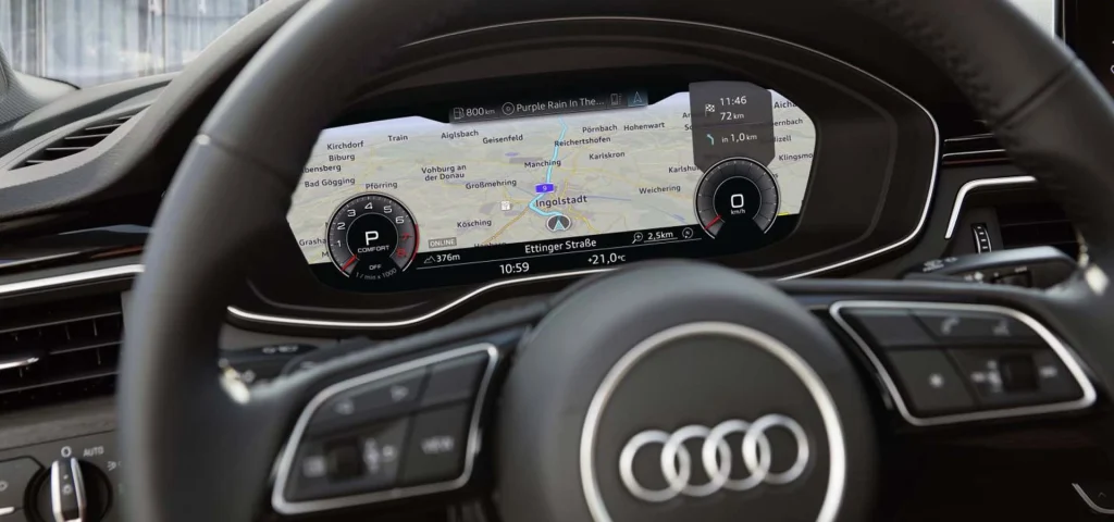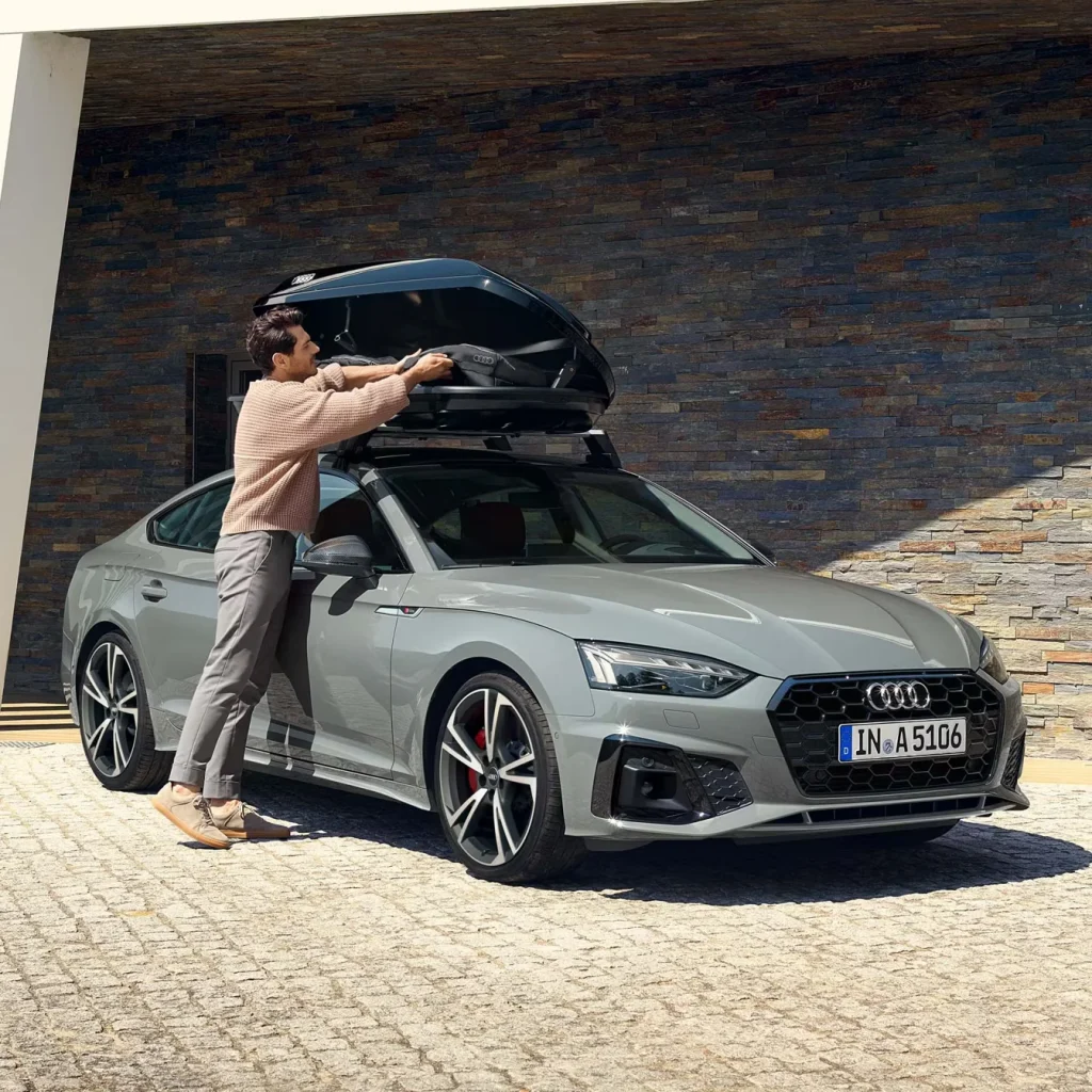 Thanks to its large interior, the luggage compartment and rear of the Audi A5 Sportback offer plenty of space for leisure and family. The spacious feel is visually underscored by the horizontal design elements in the interior, the user-friendly centre console, door rail trims in gloss black, and the high-quality materials. Customise your vehicle further with the optional interior design selection and the optional S line equipment line. The state-of-the-art infotainment platform and the optional ambient lighting package plus lend the interior of the Audi A5 Sportback its progressive elegance.