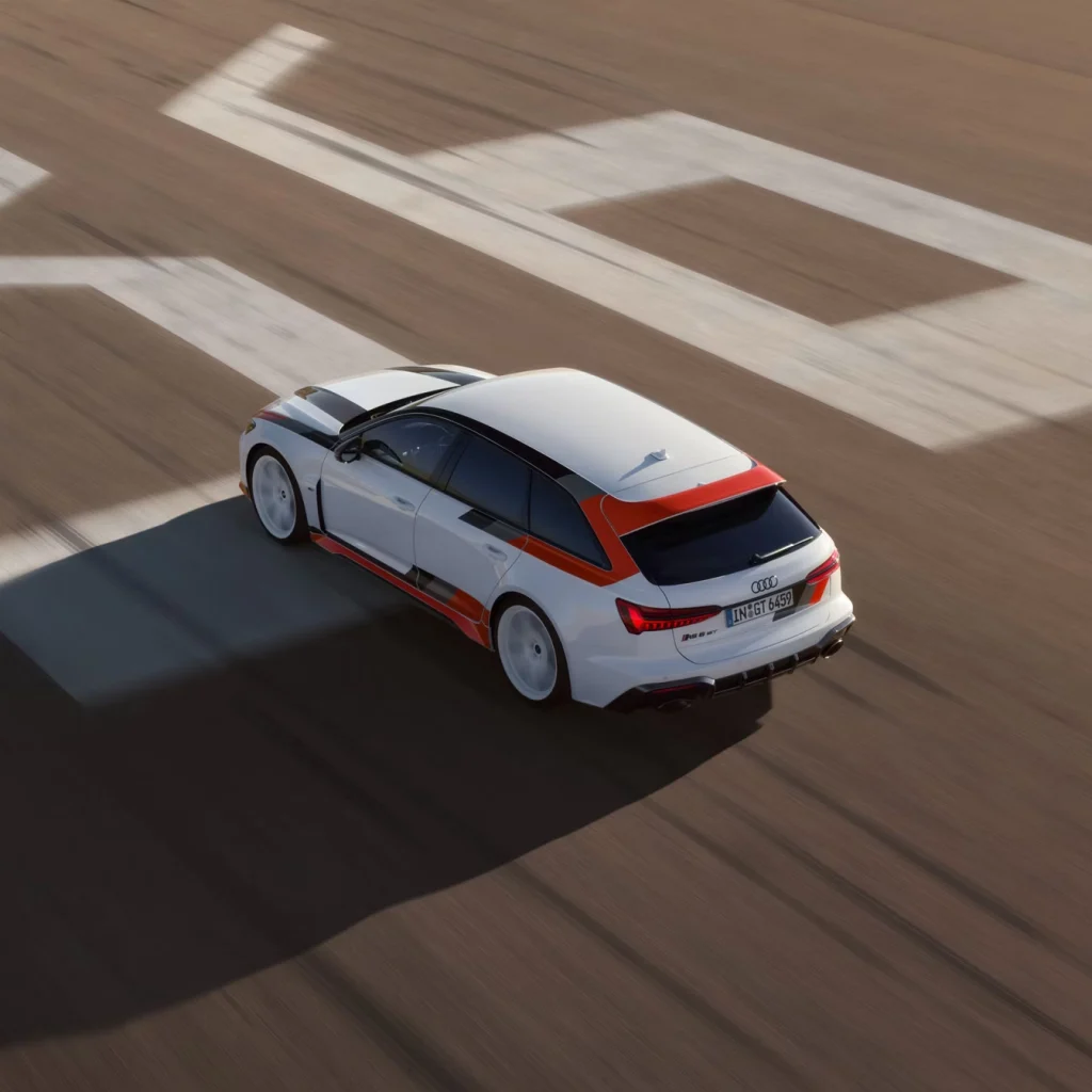 The RS 6 GT, impresses with attachments designed specially for it: from the bumpers to the roof edge spoiler all the way to the rear diffuser. The exclusive wrapping is a homage to Audi sports car tradition.