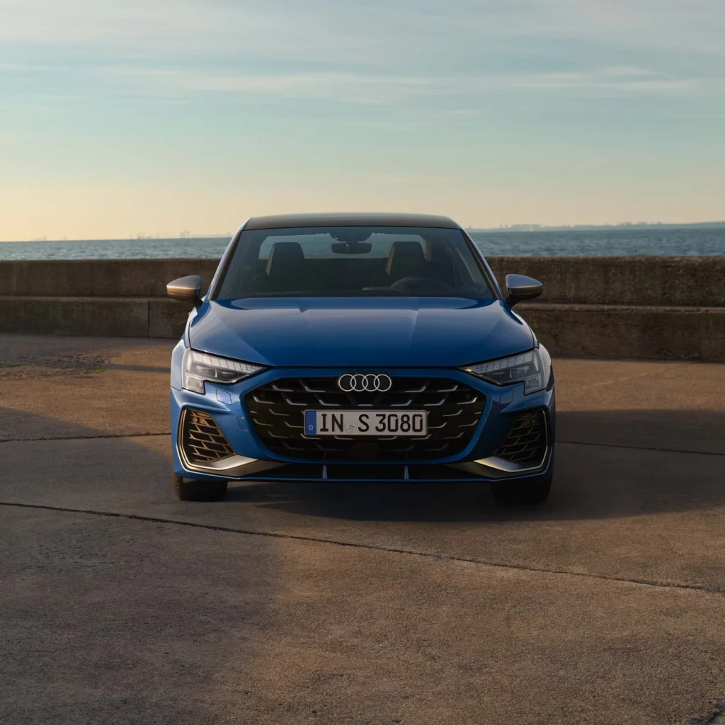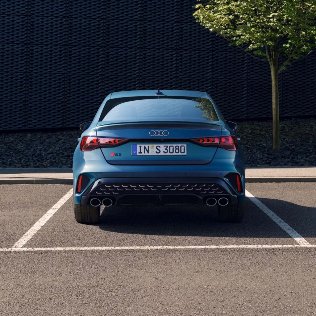 In Ascari blue, metallic and with the S-specific bumper as well as the rear spoiler in body colour, the sporty DNA of the new Audi S3 Sedan is emphasised particularly well. Add further accents with the gloss package.