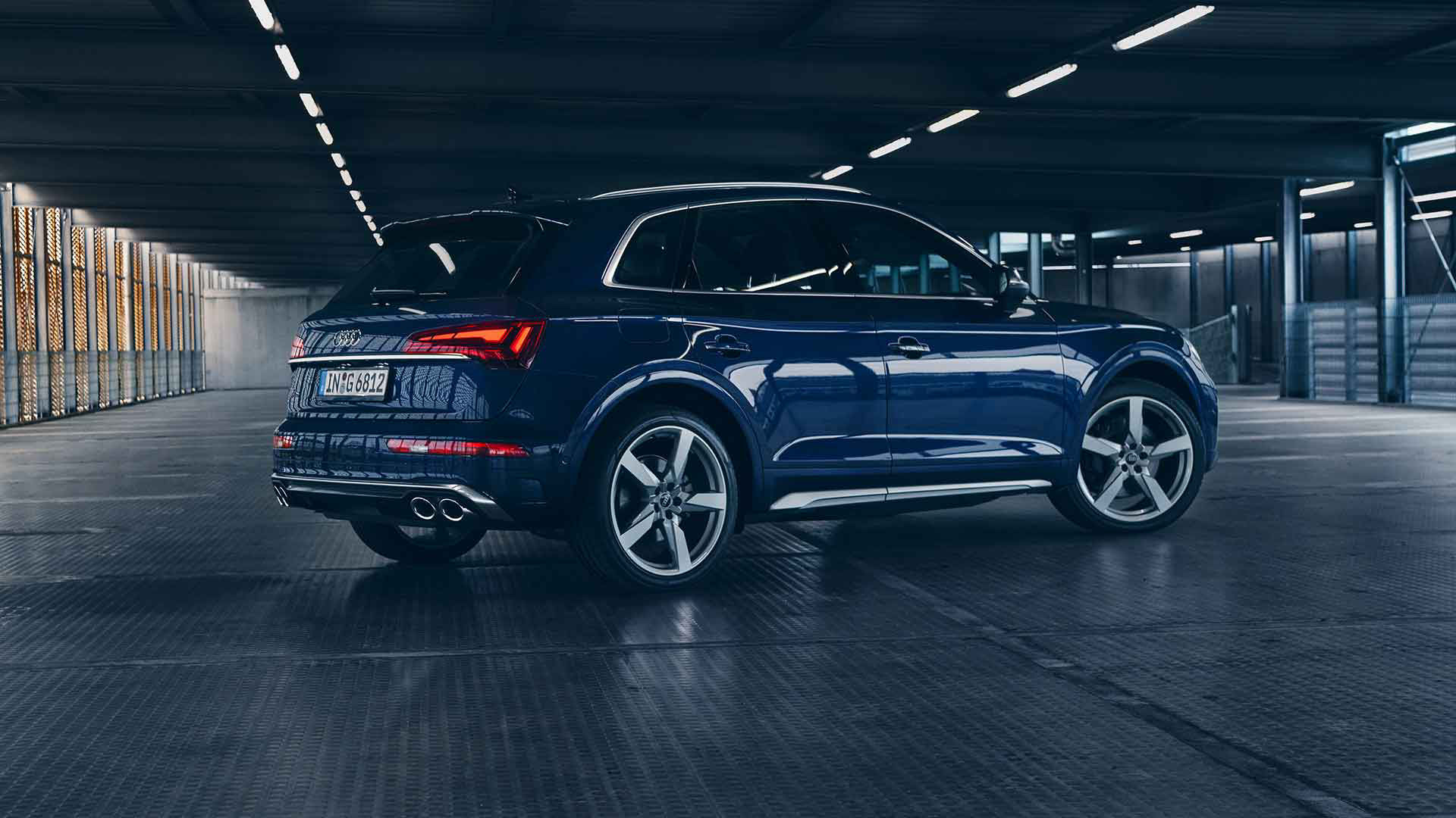 The 3.0-litre V6 TFSI engine with 260kW and the electric compressor accelerate the Audi SQ5 from 0 to 100 km/h in 5.4 seconds and swiftly on to its electronically regulated top speed of 250 km/h. The power transmission takes place through fast and convenient gear changes via the 8-speed tiptronic. The standard quattro permanent all-wheel drive with self-locking centre differential distributes power variably between the front and rear axles. The basic distribution is 40 : 60. However, up to 70% can be directed to the front or up to 85% to the rear to facilitate even more traction. This lets the Audi SQ5 confidently master a wide range of difficult conditions.