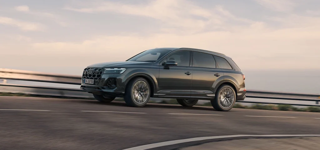 Sporty driving and high comfort are no contradiction on the Audi SQ7 SUV. With innovative suspension technologies, quattro drive and the powerful V8 TFSI engine, it unleashes both thrilling dynamism and outstanding stability on the road.