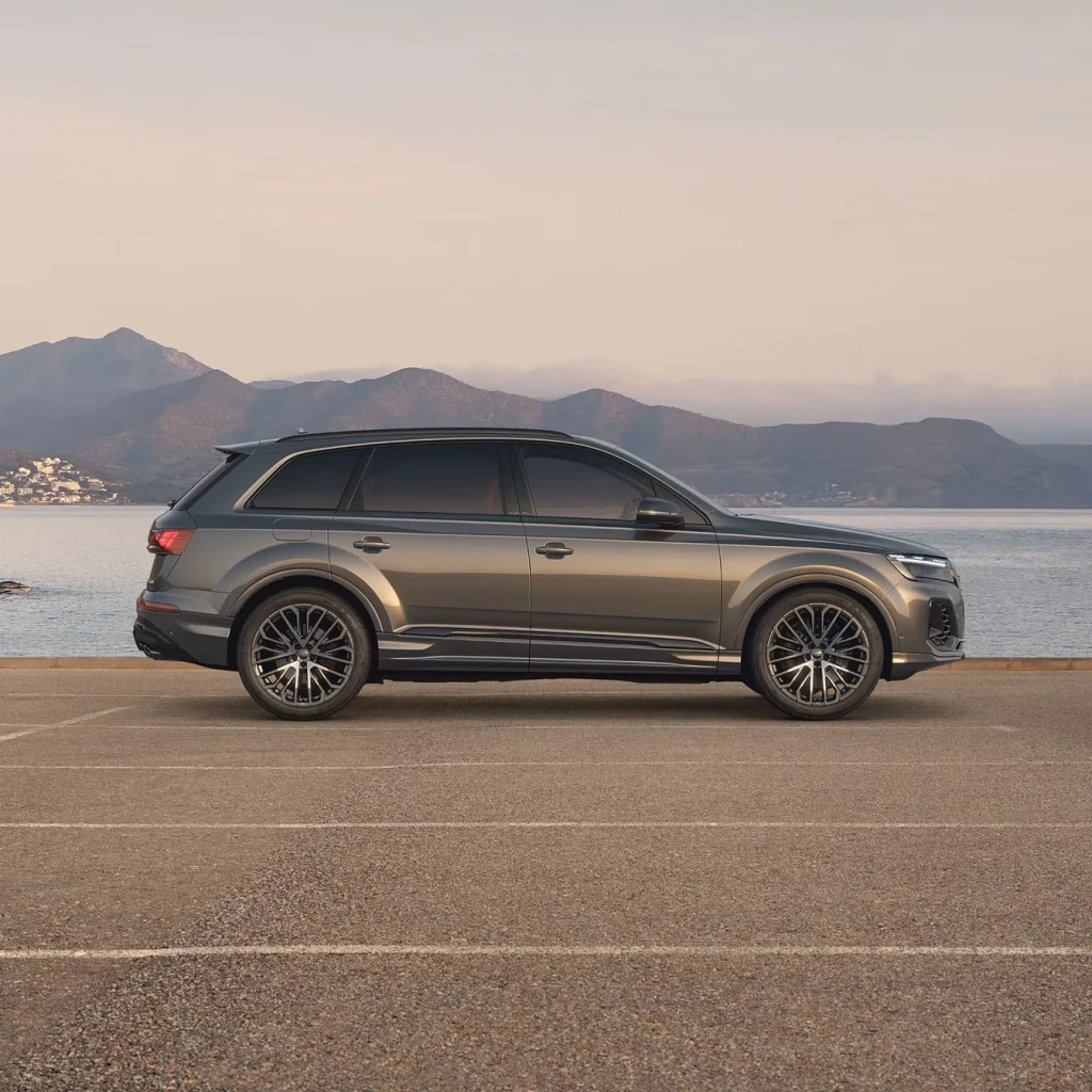 With S-specific attachments in a new design, the Audi SQ7 in Daytona grey, pearl effect exudes pure sportiness.